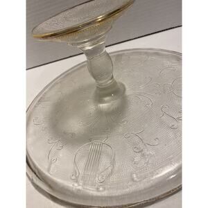 Vintage Harp Pattern By Jeanette 10" Elegant Glass Round Cake Stand Pink Tone
