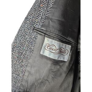 Vintage Harris Tweed 42 Blazer Union Made Gray Herringbone Wool Academia Classic