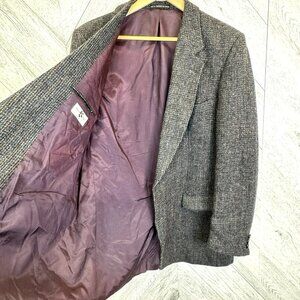 Vintage Harris Tweed Blazer Sport Coat Jacket Mens 46 Tall Wool Retro Hipster