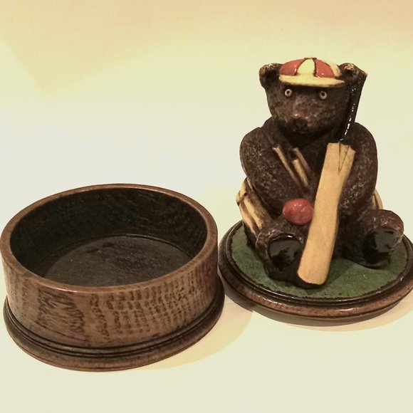 Vintage Harrods British Cricket Player Bear Trinket Box