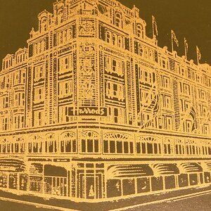 These vintage coasters from Harrods encapsulate the elegance of a bygone era, featuring an intricate design of the iconic department store. The rich green and gold palette adds a touch of sophistication, while the felt backing ensures surfaces remain unscathed. Ideal for those who appreciate historical charm in their home decor.