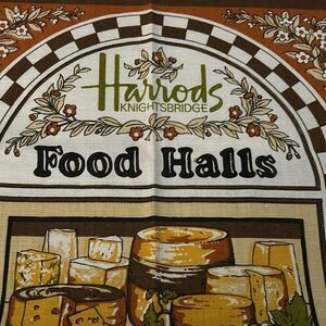 Vintage Harrods food Halls 1960s cheese tea towel Size 18 1/2” x 30”