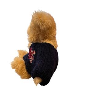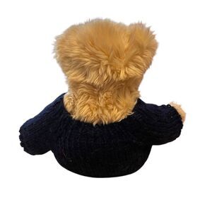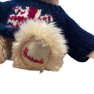 Vintage Harrod’s Plush 8” Seated Beige Teddy Bear Union Jack Flag Sweater