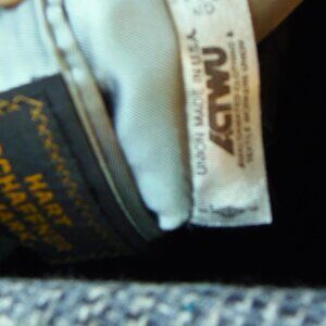 The Vintage Hart Schaffner & Marx Blue Tone Tweed Sports Jacket Coat is made of 100% virgin wool and features a classic flat front design with a four-button sleeve button style. With ACTWU UNION Label.