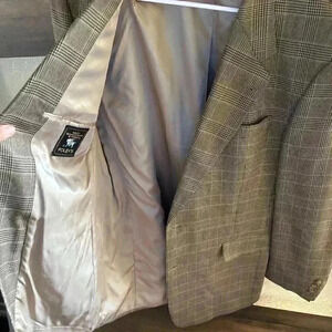 Vintage Hart Schaffner & Marx Brown Plaid Wool Suit Blazer Size 44L
