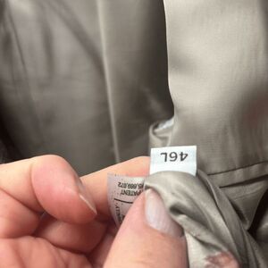 Blazer has both buttons on the front, I guess I didn't notice the top became unbuttoned. Its in excellent condition. Has a great small hounds tooth pattern. 100% Wool Made in the USA