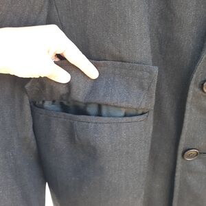 Good condition with minor signs of wear. No size tag, please see measurements. Approximate flat lay measurements pit to pit 24 inches, length 40 inches. Small repair done on back, please see last photo. Not noticable. Dark gray color.