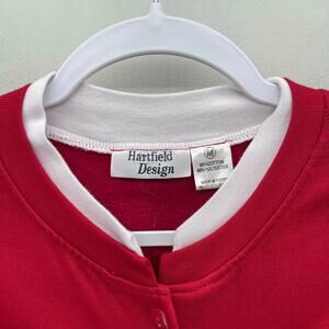 Vintage Hartfield Design Red Reindeer Snowflake Button Down Christmas Sweatshirt