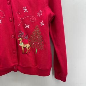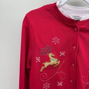 Vintage Hartfield Design Red Reindeer Snowflake Button Down Christmas Cardigan Sweatshirt