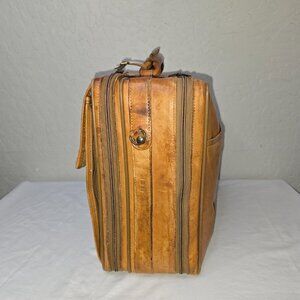 Condition: Vintage, the case comes from a non-smoking environment. It's in good condition with no damage or repairs. The belting leather exterior has spots, stains from use. There are no scuffs or scratches on the leather. All of the exterior corners and edges are nice and clean with no wear. Zippers are all in perfect working order. All of the interior compartments are clean as well. Detachable leather strap is clean with no issues.The case does have a very discrete monogram the initials NEB are stamped on one of the exterior side panels. Leather top handles has no issues. There is no key for the push lock on the exterior front pocket. Currently the locks works perfectly but there is no key to lock it if you desire to do so.