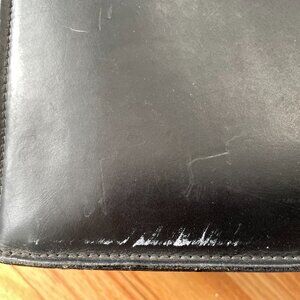 Black leather zippered binder organizer. Easily holds a tablet/phone and other business items. Inside has several sections/pockets, one zippered. Measures 13.5" W x 10" H x 1.5" W. In great condition, never used. Will sell separately. Make me an offer. Thanks!