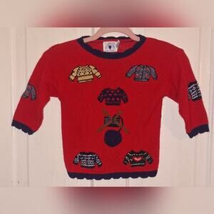 Vintage Hartstrings 3T Toddler Baby Kids Sweater Red With Mini Sweater Design