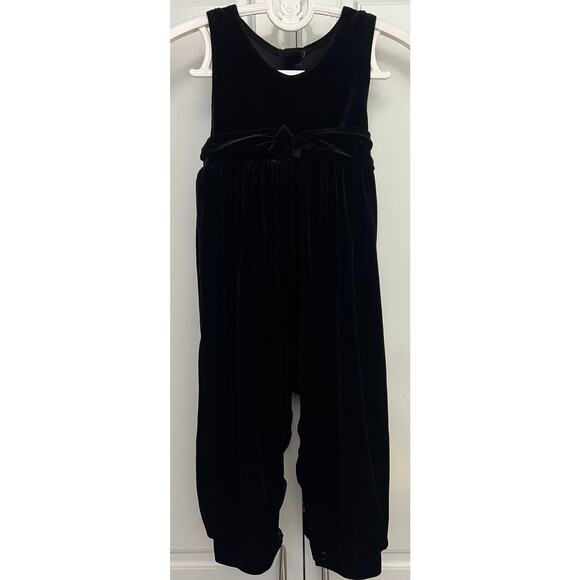 Vintage Hartstrings Baby Girl Black Velour Overalls/Romper Self Tie Size 24M. Excellent vintage condition. No holes or stains noted. Appears very gently used. Please see photos.