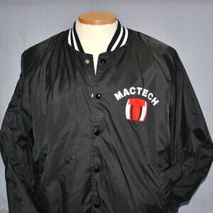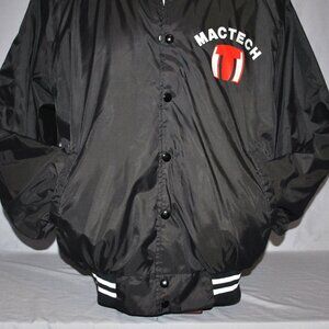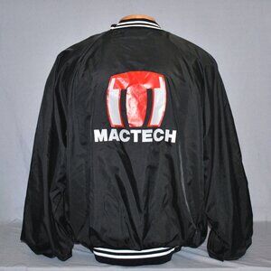 Hartwell, vintage Hartwell jacket, bomber jacket, satin jacket, black, white, gray, red, 80s, 1980s, 90s, 1990s, retro, athletic, Spalding, Starter, Russell, made in the USA, varsity jacket, mechanic, work jacket, workshop, computers, Mac, MacTech magazine, field machining, outdoors, windbreaker, pockets, logo, graphic print, screen print, big logo, Apple, tools, old school, sports, athletic, snaps, pockets, hipster, nerdy, nerdcore, MT, nylon, stripes, Champion, dad, dadcore, size XL, jacket with lining, preppy, gear head, spring, summer, fall, winter, autumn, light, packable,