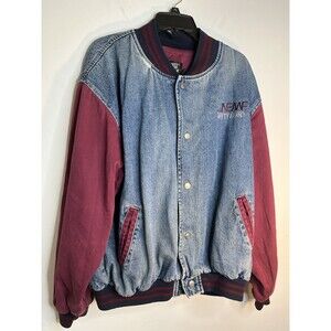 Vintage Hartwell ViaSport Denim Varsity Bomber Jacket Button XL 80s