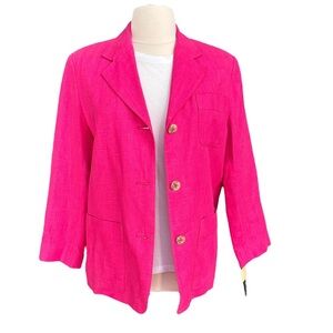 Vintage Harve' Benard Women's Pink 100% Linen with Front Pocket Jacket Size: 14
