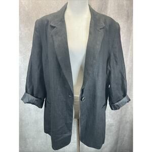 Vintage Harve Benard by B. Holtzman Women Sz 20 Black 100% Linen Blazer Jacket