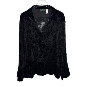 Keywords: black velvet jacket, Harve Benard blazer, evening wear blazer, velvet button blazer, elegant black blazer, dressy velvet jacket, long sleeve blazer, burnout velvet blazer, women's size M blazer, textured black jacket, professional women's blazer, polyester spandex blazer, button closure jacket, vintage harve bernard, vintage harve bernard plus size, vintage harve bernard blouse, vintage harve bernard velvet top, vintage harve bernard velvet burnout, whimsigoth top