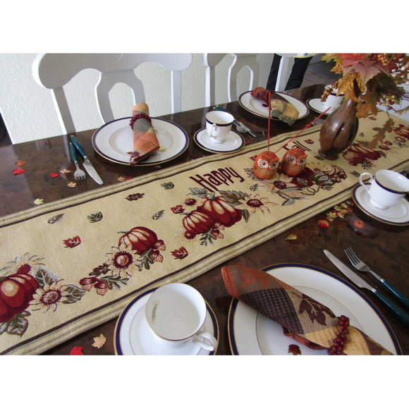 Harvest Fall Autumn Thanksgiving Tapestry Table Runner