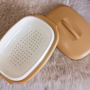 Vintage Tupperware Microwave Steamer/Storage Dish - 3 pieces - Excellent Condition - 9.5" x 6.5" x 2.5" container