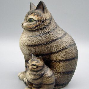 Vintage Harvey Knox Fat Cat Figurine of a Tabby Mother and Kitten. This measures approximately 5 ¾” tall by 4 ½” wide and is in preowned but beautiful condition with stickers and signature on the bottom. #414103.