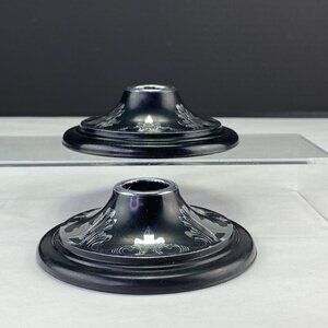 Vintage Harvite Black Silver Tone Inlayed Candle Holders