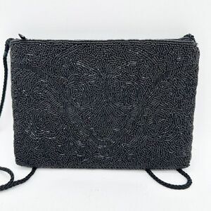 Vintage Hastings & Smith Black Beaded Clutch Purse With Strap 9"x6"x0.5"