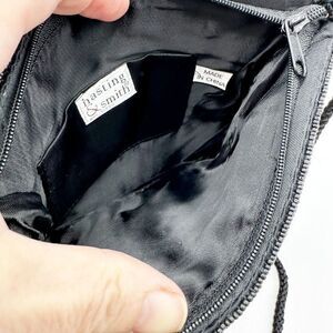 Step into a world of timeless elegance with this vintage black beaded clutch by Hastings & Smith. With its intricate beadwork and compact design, this purse adds a touch of sophistication to any ensemble.