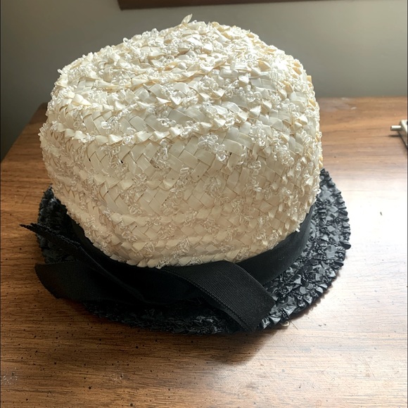 Adorable off white & black vintage hat union made in USA #172098. EXCELLENT CONDITION