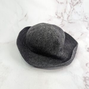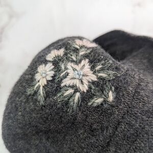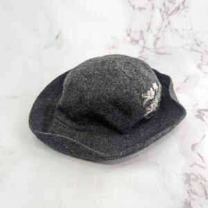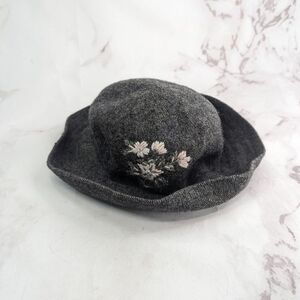 Vintage Hat Bucket Womens Gray Floppy Felted Embroidered Floral Pink