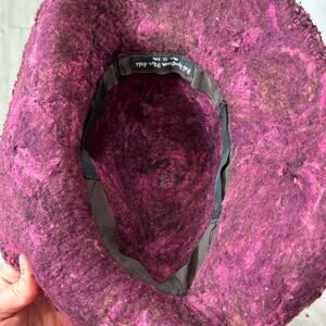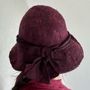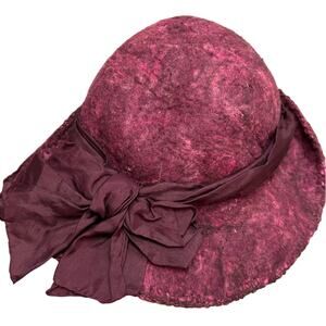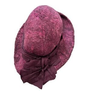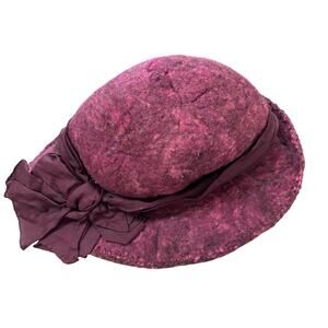 Vintage Hat- Felted wool- purple pink with attached ribbon bow- retro- some wear