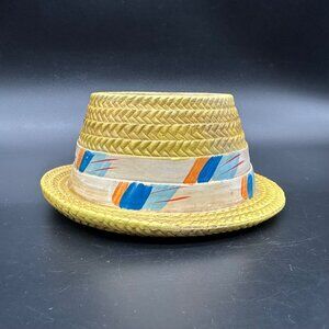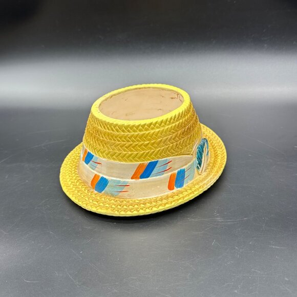 Vintage Hat Planter Inarco Japan Yellow Feather Mid Century Kitsch Decor Ceramic