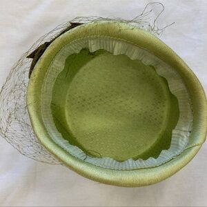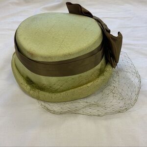 Vintage Hat Shimmer Sage Green/Olive Green Satin Bow Veiled