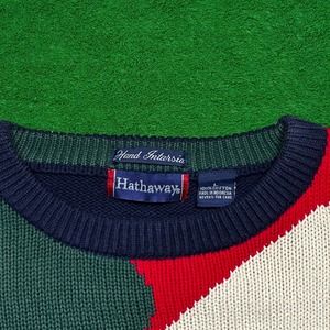 Vintage Hathaway AOP Pattern Knit Golf Sweater Size Large
