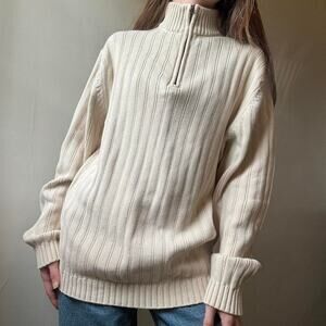 Vintage Hathaway Cream Knit 3/4 Zip Sweater Medium Cotton Preppy Fall Winter