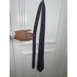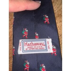 Vintage Hathaway Men's Silk Tie Navy Blue Santa Holiday Print