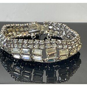 Vintage Hattie Carnegie Rhinestone Bracelet With Baguette & Round Stones Safety