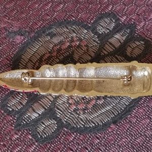 Vintage Haute Couture Red & Black Enamel Clear Rhinestone Lipstick Brooch/Pin
