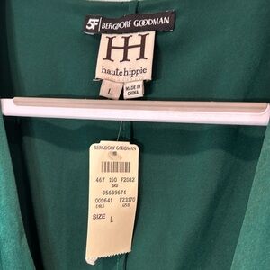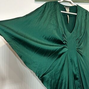 Vintage Haute Hippie Stretch Charmeuse silk Tunic Dress Sz large Emerald Green