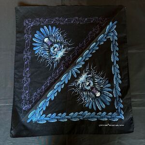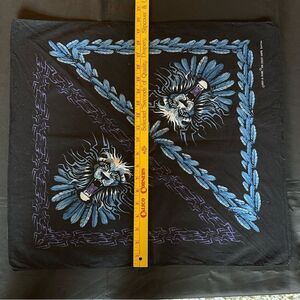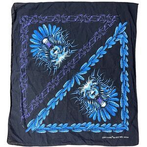 Vintage Hav-A-Hank Black Biker Bandanas -one side of triangle has Blue and other has Purple Lion and feather Designs. Price is for 2 scarves.