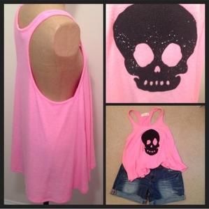 Bright pink with crystalized black skull• loose fit• wide arm holes• 52% poly 33% rayon 5% spandex • perfect for beach cover up or everyday uniqueness 💕