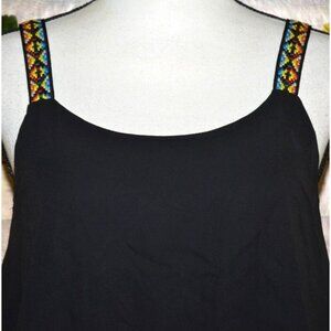 Vintage Havana Ladies Sheer Black Cropped Tank Top Size L Aztec Straps