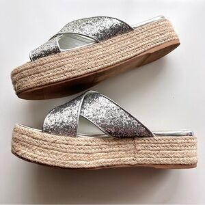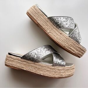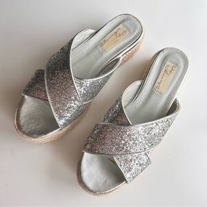 Vintage Havana Marbella Silver Glitter Espadrille Slide Sandal