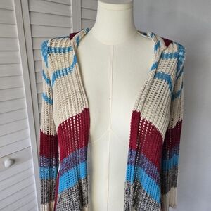 Vintage Havana Multi Knit Hooded Cardigan Size L Boho Festival Hippie Coastal