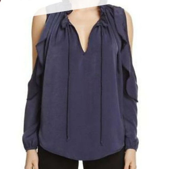 Vintage Havana Navy Open Shoulder Blouse Vintage Havana Navy Cold Shoulder Blouse Size Medium Great Preowned Condition Flowy casual blouse, soft breathable material with drawstring tie at ruffle neck collar.