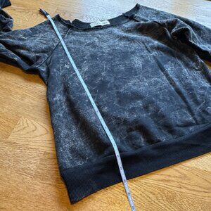 Vintage Havana Black Peace Sign Sweatshirt. So cute! The peace sign appears to be on the back based on the tags, but I used it as the cover photo to show it. Size/materials tag was cut out. Please see measurements. I feel like it could fit a medium or large depending on how you want it to fit. I love the bleach tie dye effect!