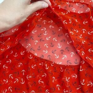 Vintage Havana Red White & Blue Sheer Anchor Print Ruffle Cut Out Back Top, M*