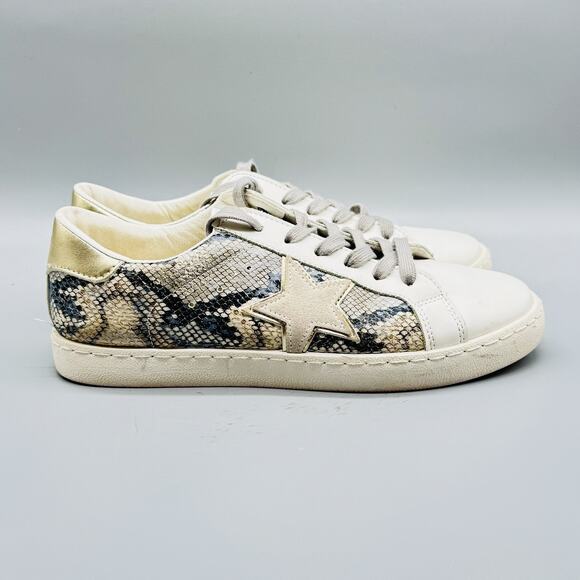 Vintage Havana Shoes Womens 7.5 White Gold Snake Print Star Low Top Sneakers