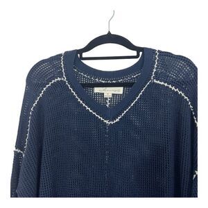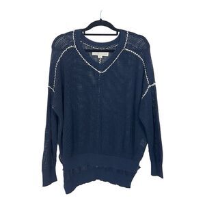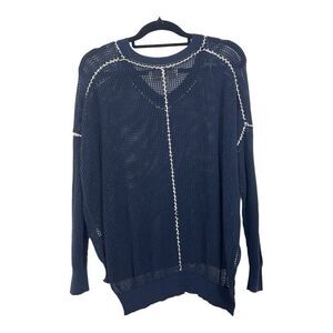 Vintage Havana Size M Lightweight Open Weave Navy V Neck Sweater White Stitching