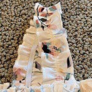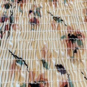 Adorable crop top and perfect for the summer. Smocked top with ruffled straps and bottom. Lots of stretch. Great with shorts, skirts or jeans.